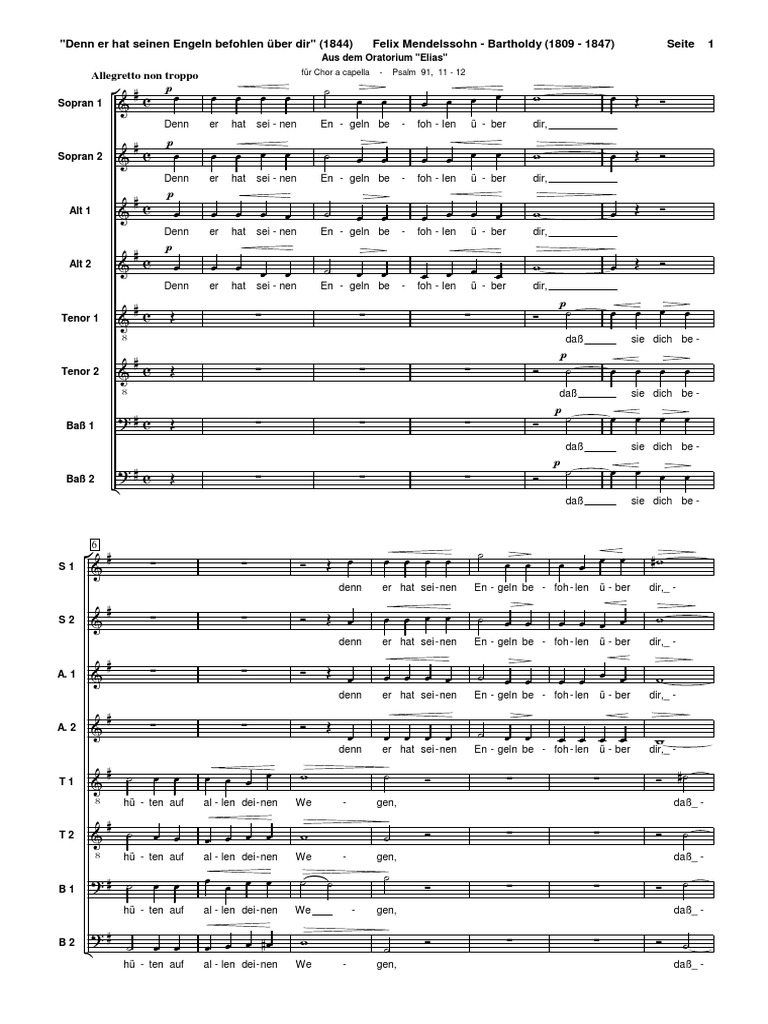 Denn er hat seinen engeln befohlen psalm 91. Psalm 91 lutherbibel 2017 unter gottes schutz 1 wer unter dem schirm des höchsten sitzt und unter dem schatten des allmächtigen bleibt 2 der spricht zu dem herrn. 3 denn er errettet dich vom strick des jägers und von der verderblichen pest. Denn er hat seinen engeln befohlen for he shall give his angels charge mwv b 53 is the incipit of a motet for an eight part choir a cappella by felix mendelssohnhe wrote it in 1844 for the berlin cathedral setting verses 11 and 12 from psalm 91later mendelssohn made the motet with accompaniment part of his oratorio elijahit was published in 1844 and by breitkopf härtel in 1875 in. Denn er hat seinen engeln befohlen über dir daß sie dich behüten auf allen deinen wegen daß sie dich auf den händen tragen und du deinen fuß nicht an einen stein stoßest. 2 ich sage zum herrn. 13 auf löwen und ottern wirst du gehen und treten auf junge löwen und drachen.
