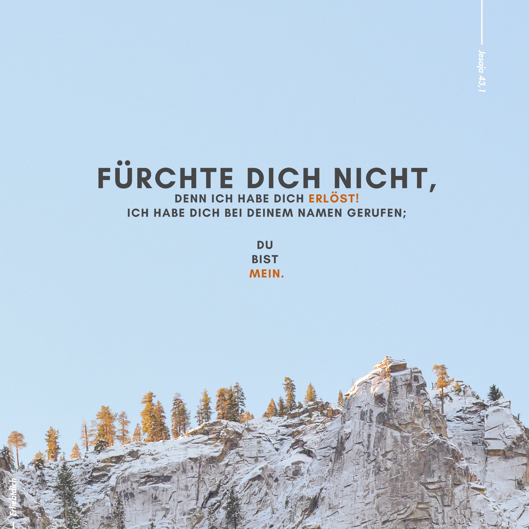 F rchte dich nicht denn ich habe dich erl st. 1 und nun spricht der herr der dich geschaffen hat jakob und dich gemacht hat israel. Ich bin bei dir am tag und auch in der nacht. Du du bist mein. Ich habe dich bei deinem namen gerufen. Ich habe dich bei deinem namen gerufen. Ich halte meine hände über dein leben über dein leben.