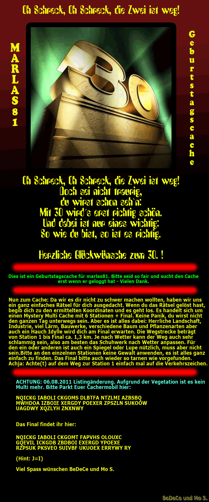 Mit 30 wirds erst richtig schön. 0 hallo danie hab nen süßen spruch für dich. Doch sei nicht traurig du wirst schon sehn mit 50 wirds erst richtig schön. Its a small size geocache with difficulty of 35 terrain of 3. Oh schreck oh schreck die 2 ist weg. Oh schreck oh schreck das kind ist weg so tönte es im kinderprogramm des zdf in den guten alten achtzigern.